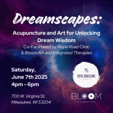 Journey through the dream world and into a space of healing in this immersive workshop. Using acupuncture to soothe the mind and body, participants will then tap into their dream state to create art that reflects their inner thoughts and emotions. Learn how acupuncture points can support dream recall, emotional balance, and clarity, while discovering your own personal interpretations of the dream world.